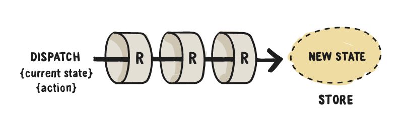 }where state is the current application state, action is the action object which has triggered the state mutation (containing an action type and any relevant payload) and nextState is the resulting computed state of the app which can be derived from the other two arguments.